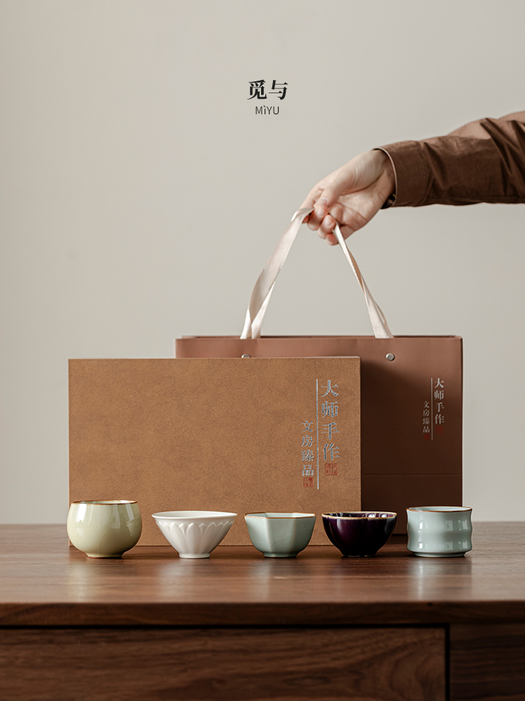 Five famous kiln teacup sets, cultural and creative tea sets, and the owner's cup will be sent to the leading teacher, retired business souvenirs