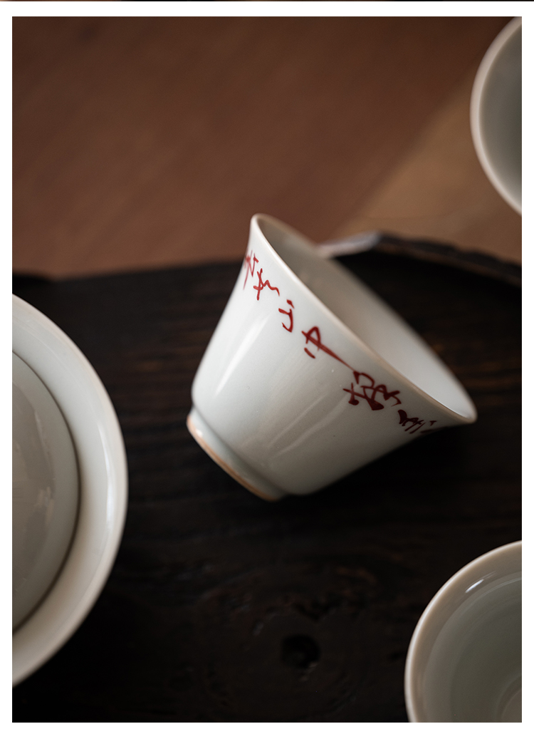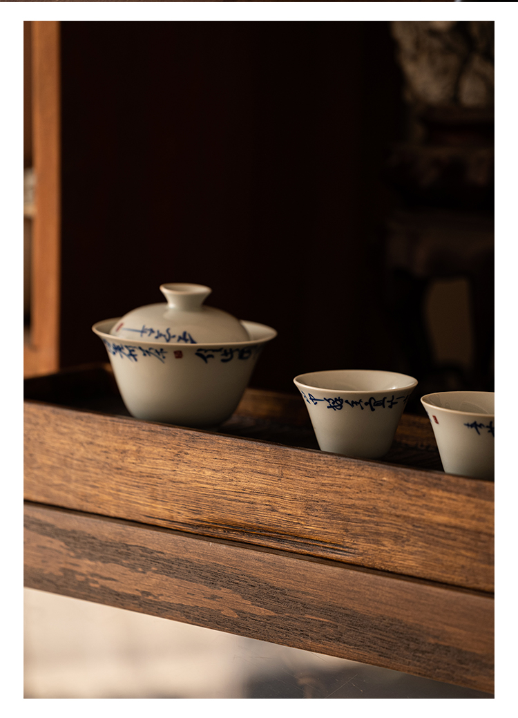 Color Classification: Blue - and - white covered bowl, iron - red covered bowl, blue - and - white cup, iron - red cup