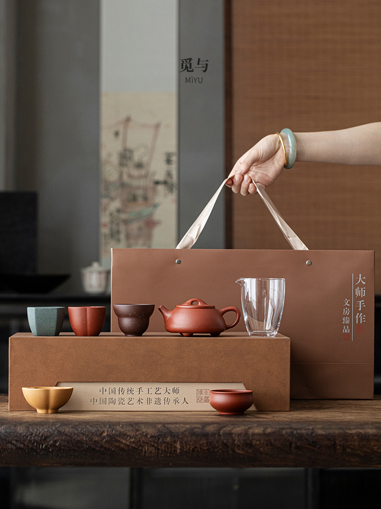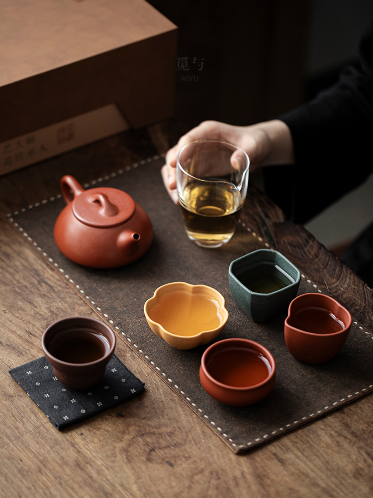 Purple sand stone ladle Xishi teapot set 1 pot 5 cups kung fu tea set